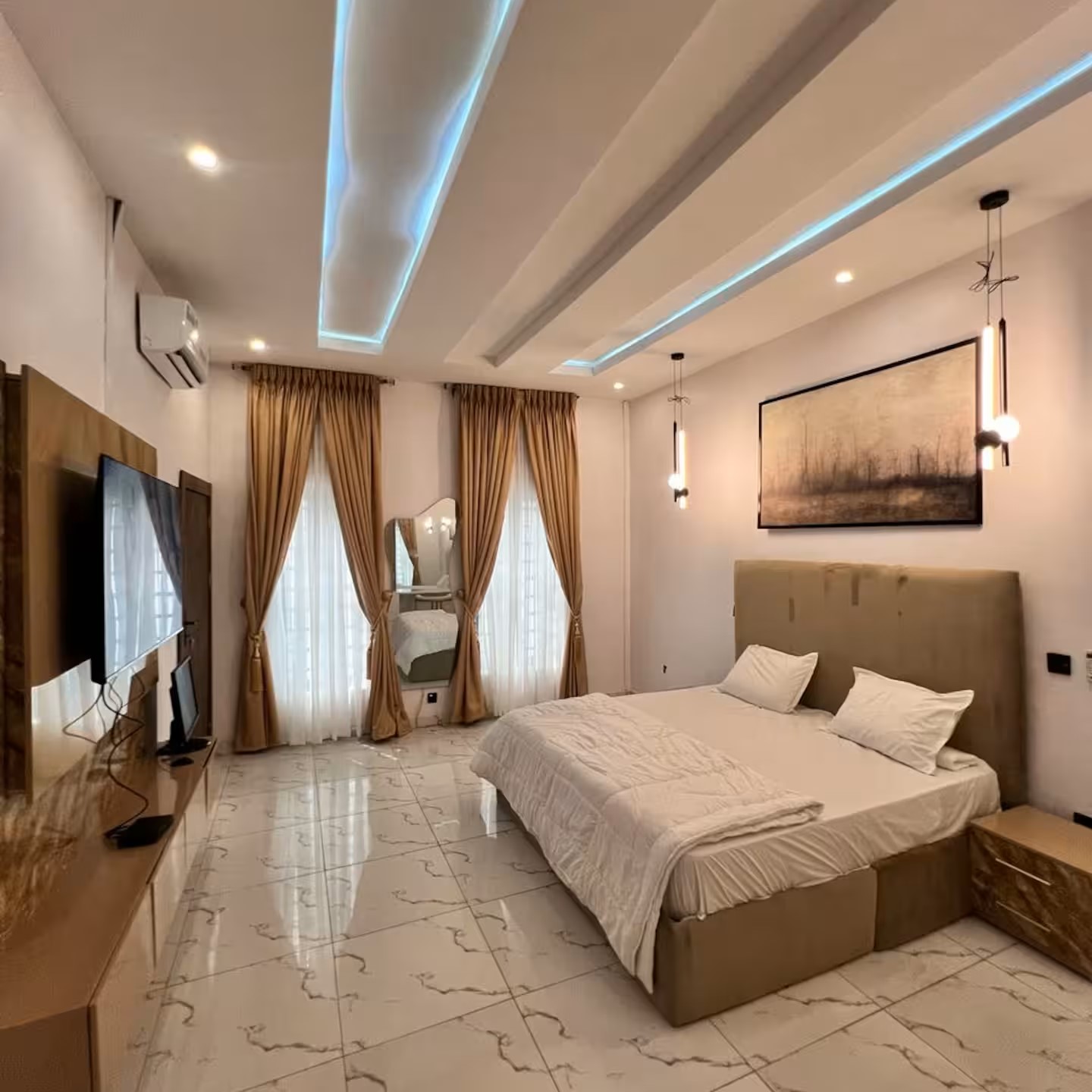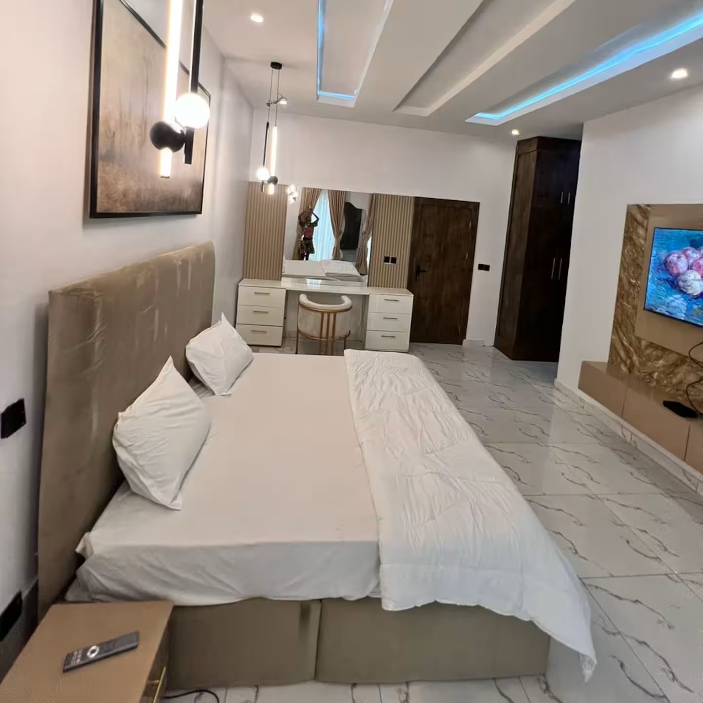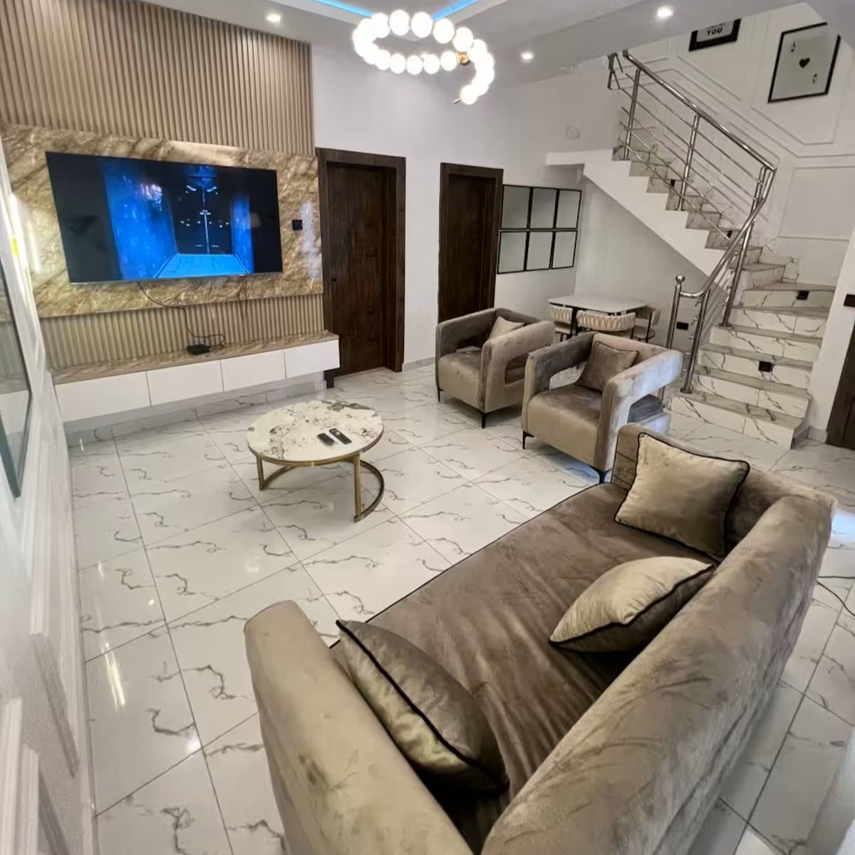 Stay in this stylish 4-bedroom apartment near Lekki Conservation Centre, located in the secure Favoured Heights Estate. Enjoy 5G internet, 24/7 power, a swimming pool, and private armed security. The home is fully furnished with Smart TVs, DSTV, Netflix, a washing machine, and daily housekeeping. With a serene environment and modern comforts, it’s perfect for business or leisure. Book now for a luxury stay!