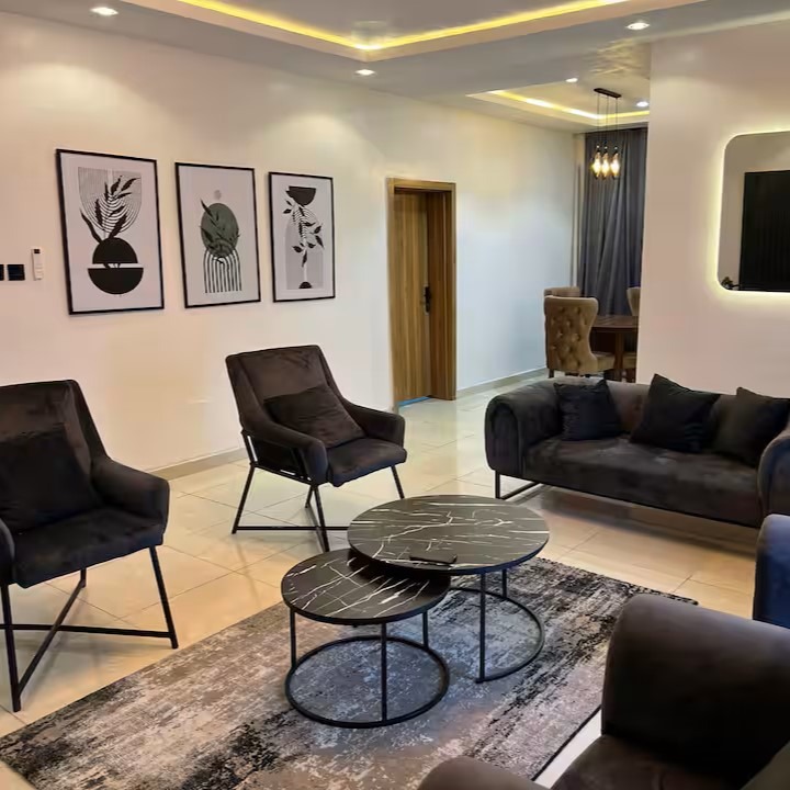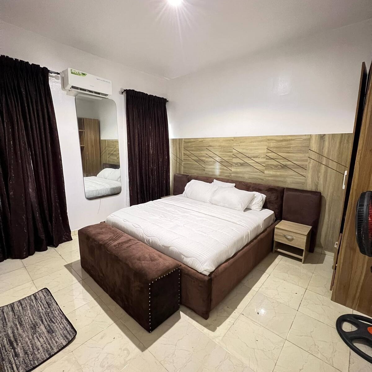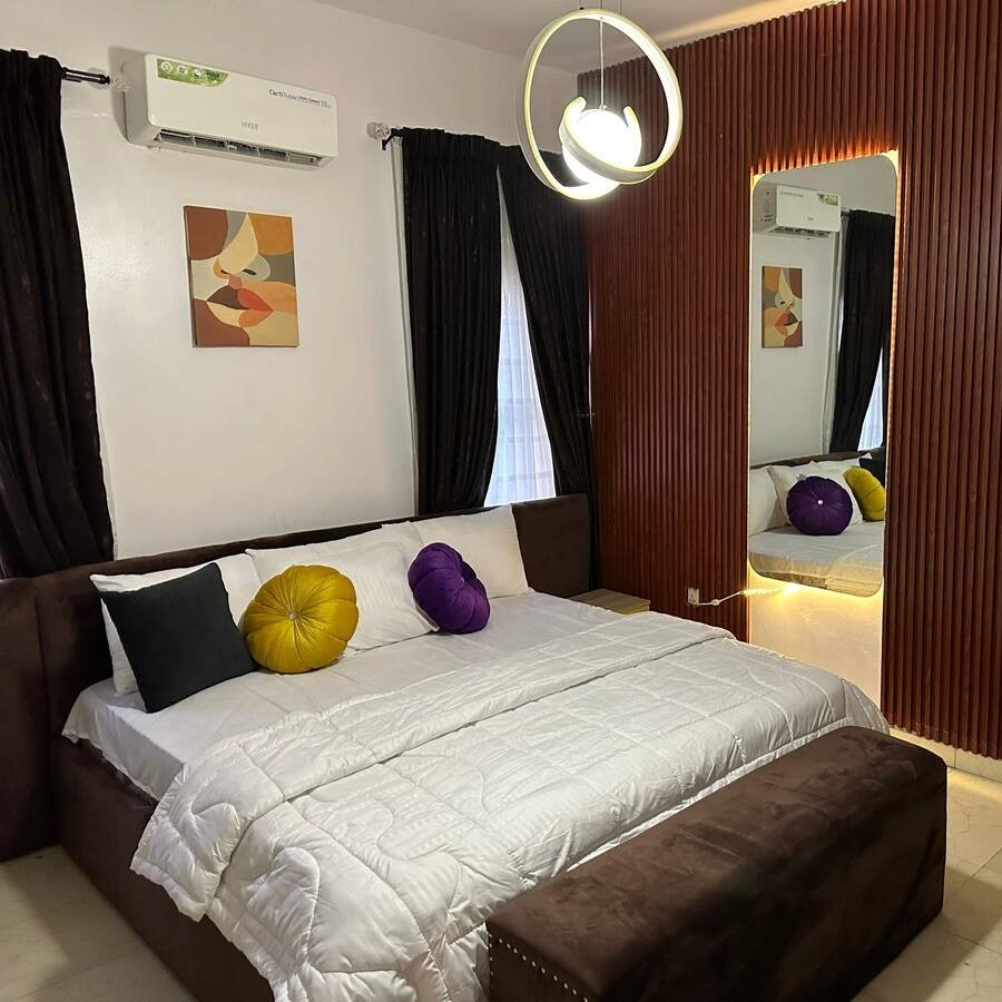 This unique place has a style of its own, from it’s elegant touch to the beautifully puzzled designs. Enjoy a conventional velvety design within all areas of the home indulging a cozy environment with a home away from home feeling. Inclusive would be a Laundry machine fitted, Kitchen appliances, Utensils, Ironing board, Iron, Fully Fitted inverter and solar system, 24-hour electricity, Private parking (2 cars), and above all we offer daily cleaning to ensure the unit does not build up dirt.