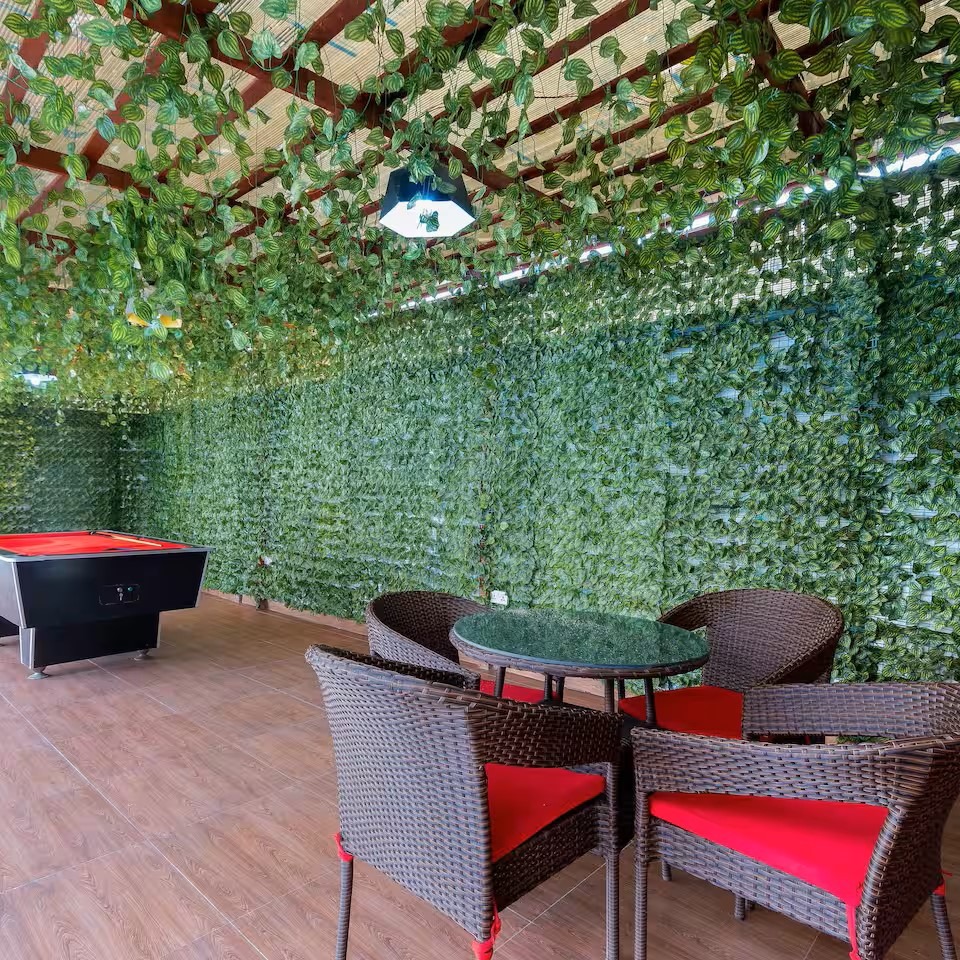 - Amenities: Air conditioning, Dedicated workspace, Free parking, Kitchen, Kitchenette, Pool, Private patio or balcony, TV, Washer, Wi-Fi