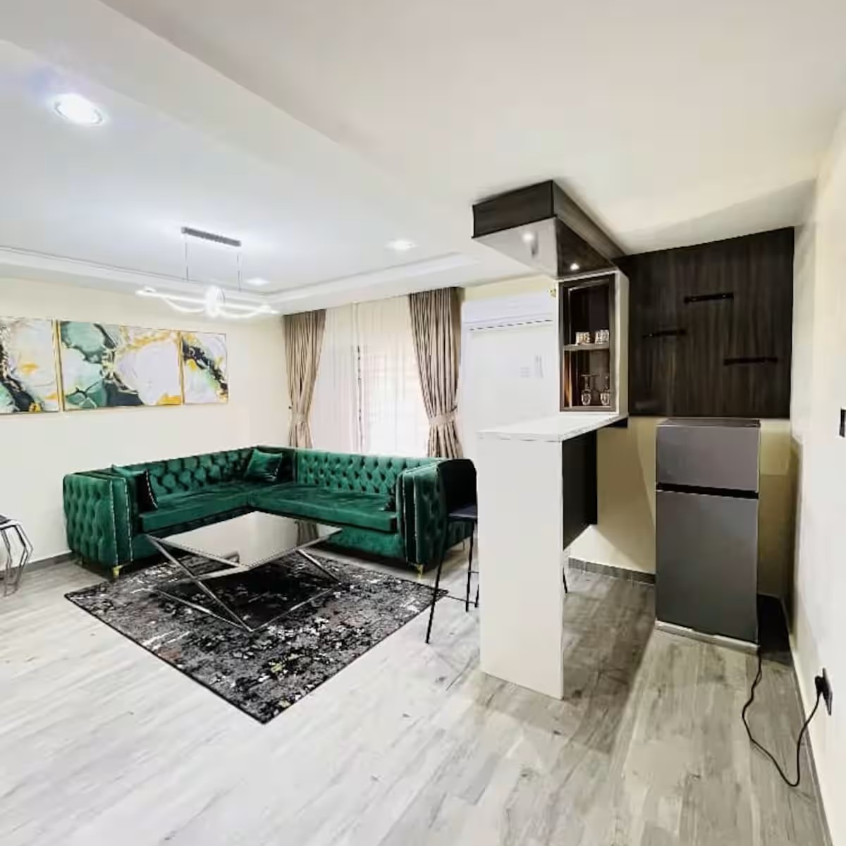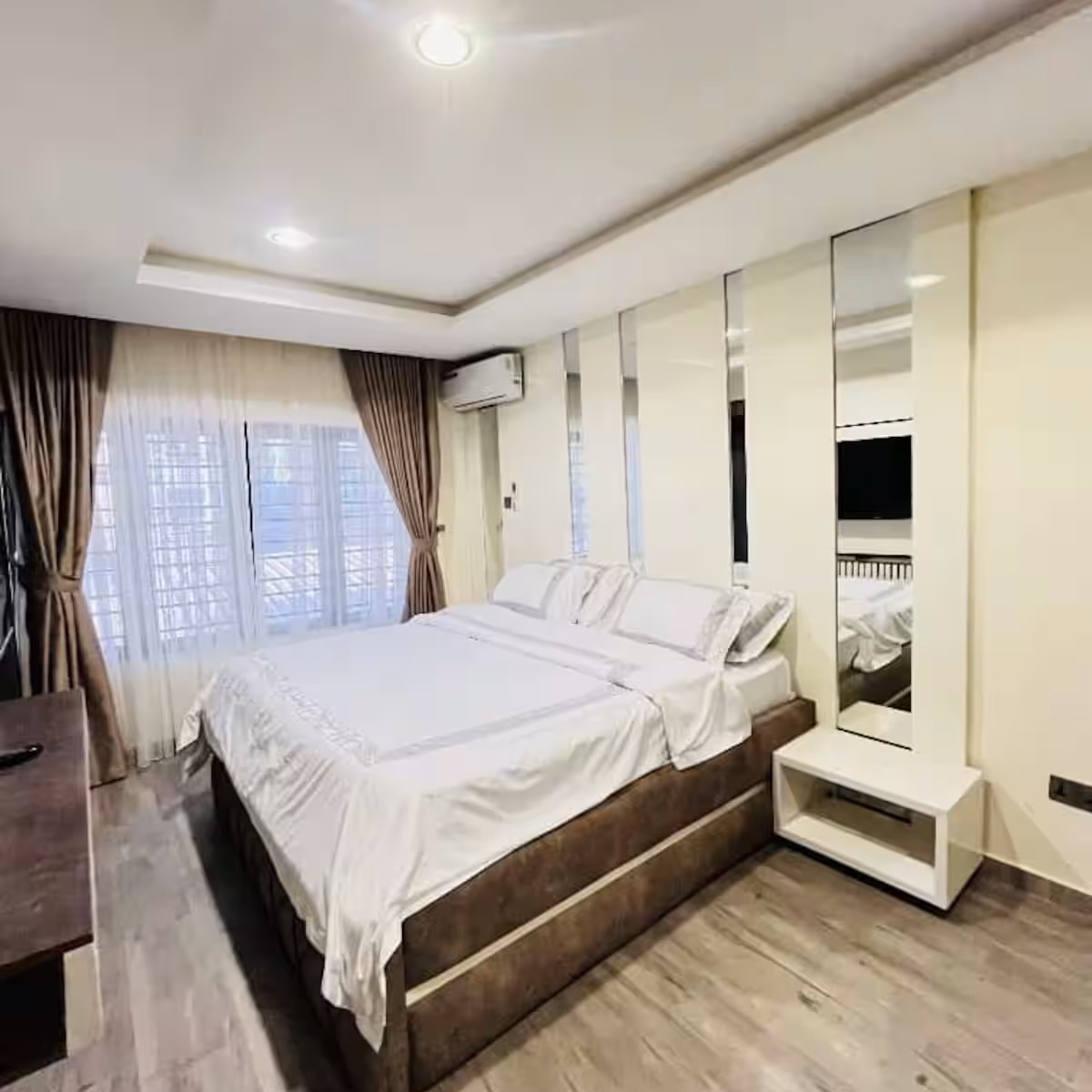 This apartment truly stands out. It boasts private swimming pool, gym, 24 hours working WiFi, high ceilings, a private balcony, 24 Laundry Service etc. You won’t find these kind of features in just any rental. And
