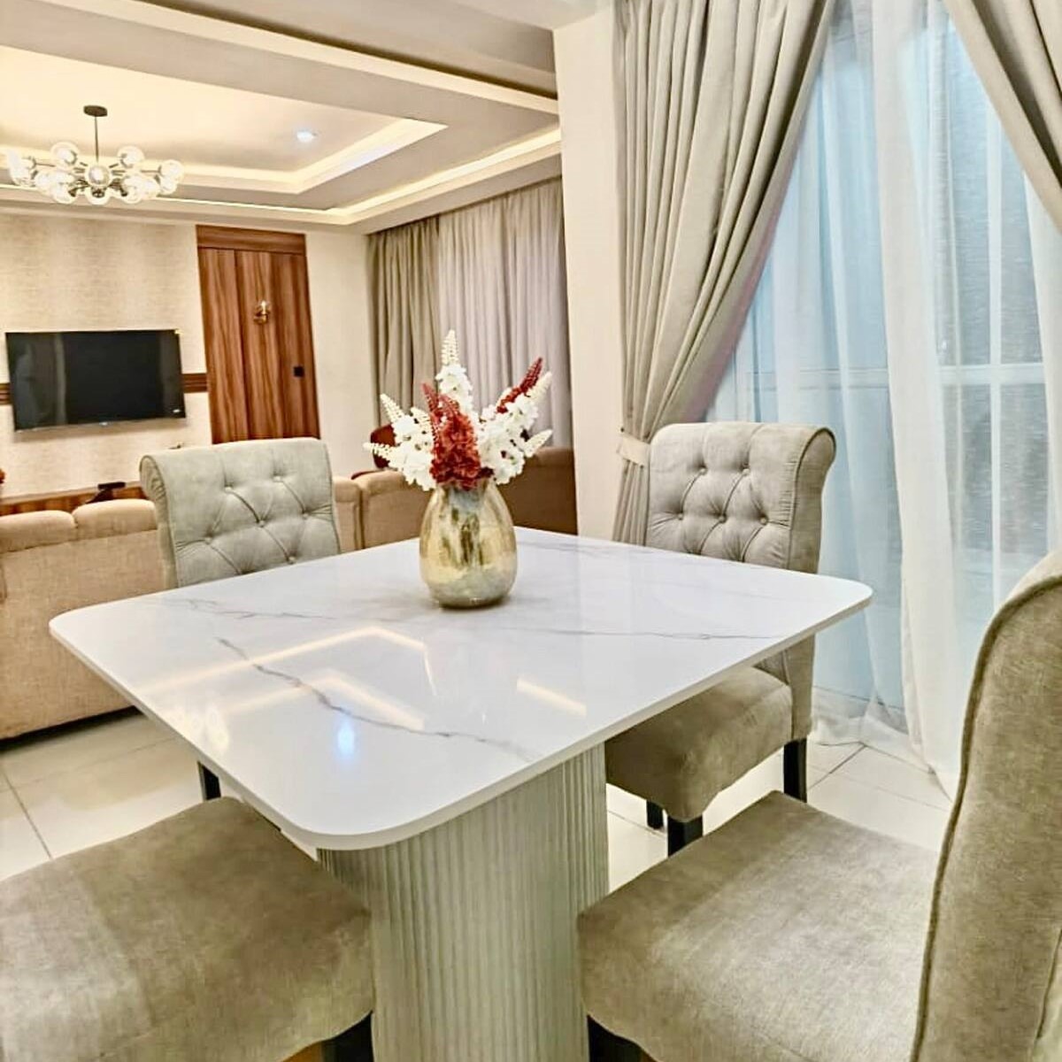 Our Penthouse is Fully equipped & serviced. En-suite Bedrooms, fully fitted kitchen, an Elevator, Private parking, 24/7 Electricity, a Swimming pool, free Wi-Fi, Smart TVs, 24/7 Security and On-site management. You can walk to Supermarkets and Restaurants, & attractions like the Polo club, Jet-ski club & Lagos Boat club are just around the corner. Nearby Church and Mosque. Easy access to the Airport. A serene environment & a Balcony overlooking an amazing view of Ikoyi and Victoria Island
