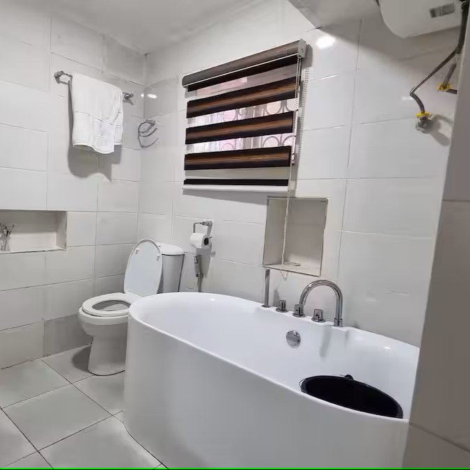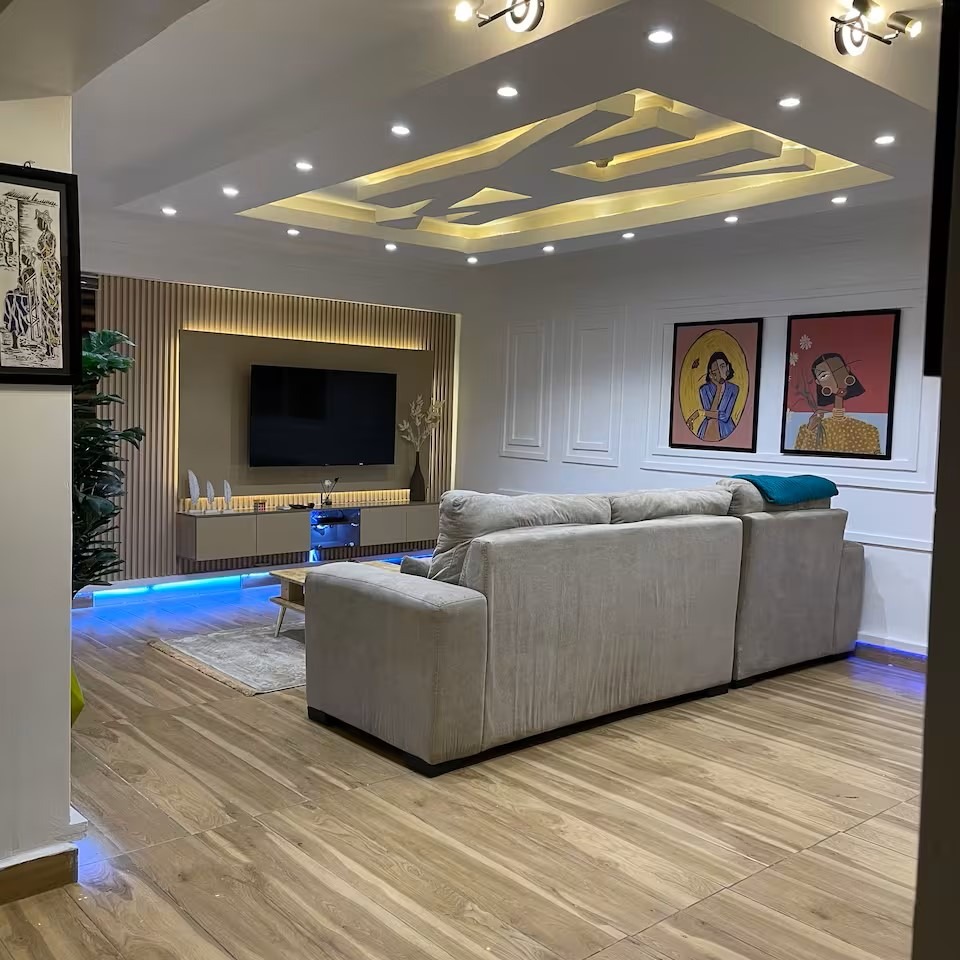 2bedroom Flat, all Rooms in Suite. Nice Sofa, interior is a cozy luxury vibe. TV in all rooms, Wi-Fi, DSTV, Netflix, Inverter, 247 Electricity. Work area. The Entire space is yours.